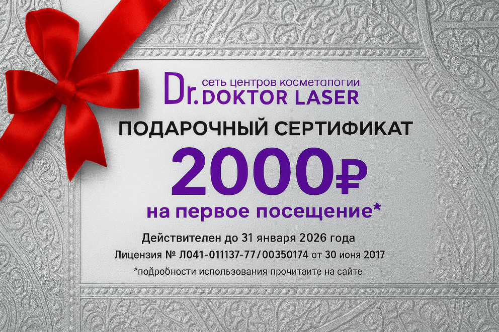 Что такое бесплатный подарочный сертификат на 2000 рублей от МЦ «Доктор Лазер»?