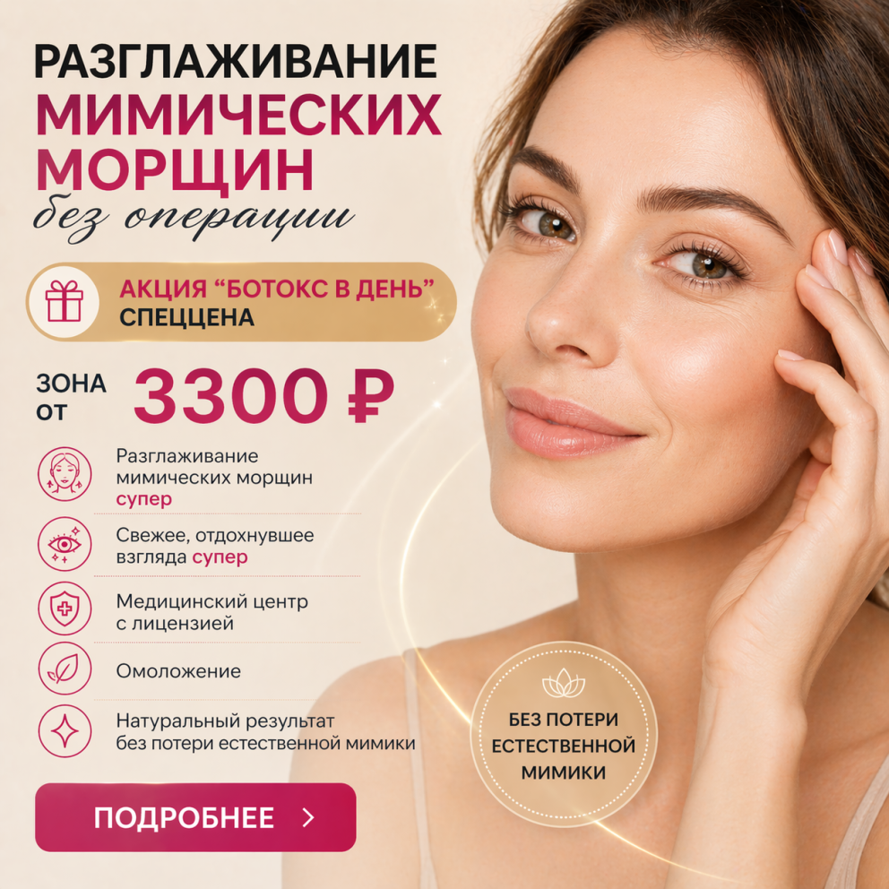 В Медицинском центре Доктор Лазер регулярно проводятся акции и специальные предложения на ботулинотерапию. Например, в рамках "ботокс-дней" вы можете получить инъекции препаратов Диспорт, Ксеомин, Миотокс, Релатокс по очень низкой цене. Следите за нашими акциями на сайте в разделе "Акции" или уточняйте по телефону +7 (499) 110-75-55. Пройдите процедуру с выгодой и наслаждайтесь результатами от опытных специалистов!